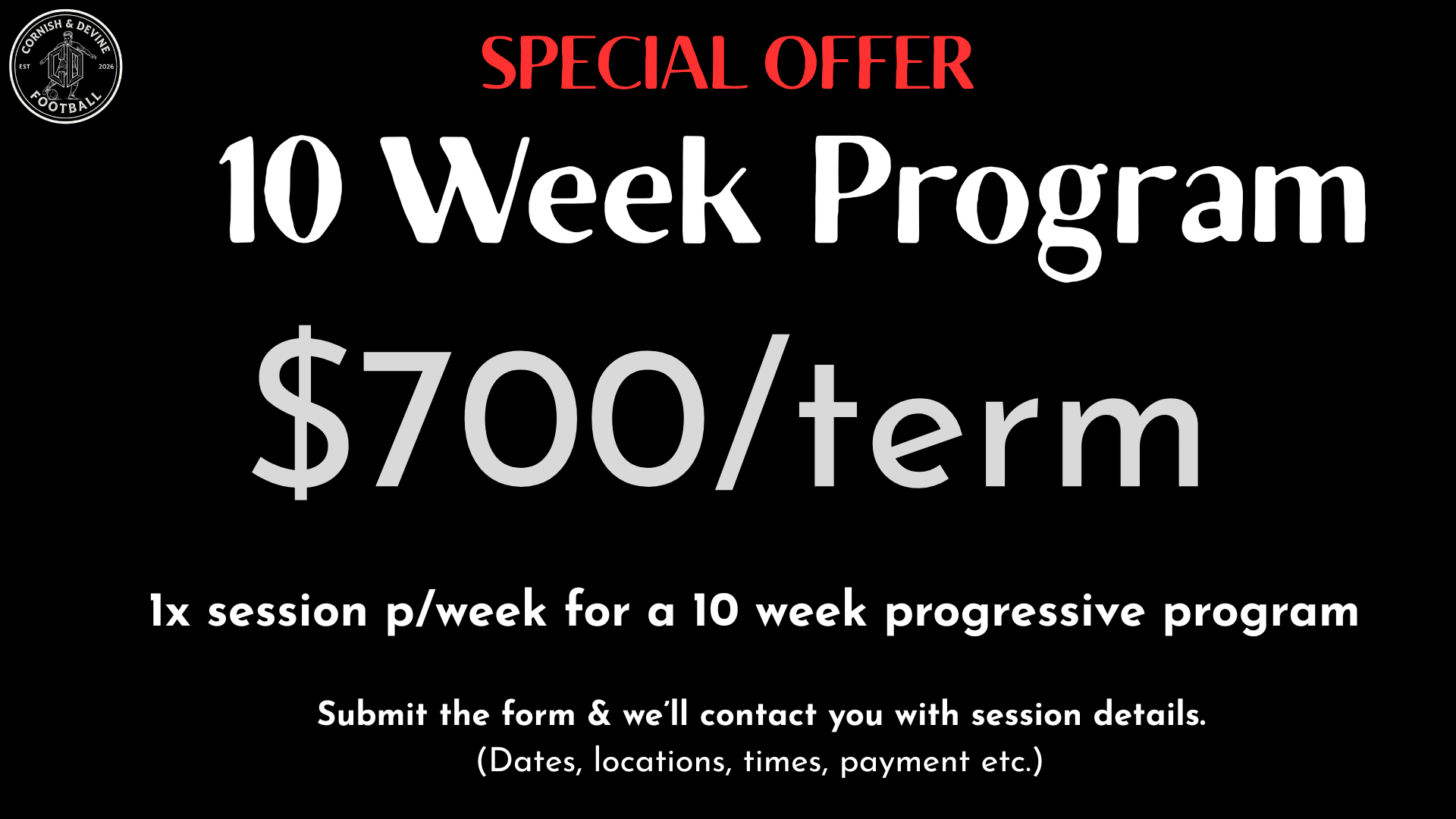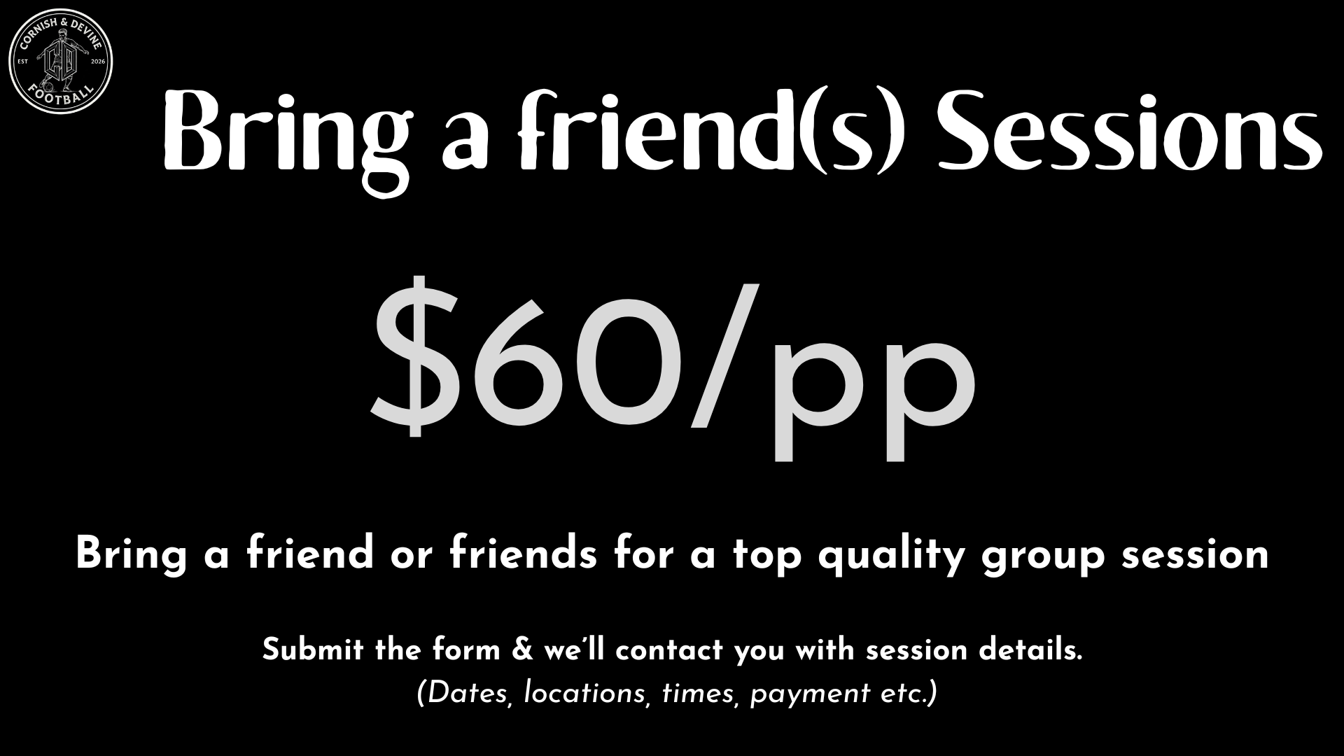 We're based in the North Shore of Sydney, Australia. Exact pitch locations will be provided once we're in contact. We expect all players to come to us. In rare cases where distance is a genuine barrier, we're open to discussing a middle-ground location, but this is not guaranteed and is entirely at our discretion.